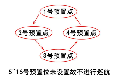 如果说你设置了1号,2号,3号,4号总计4个预置点。那么巡航时则只会巡航这4个点,忽略其他未设置的点